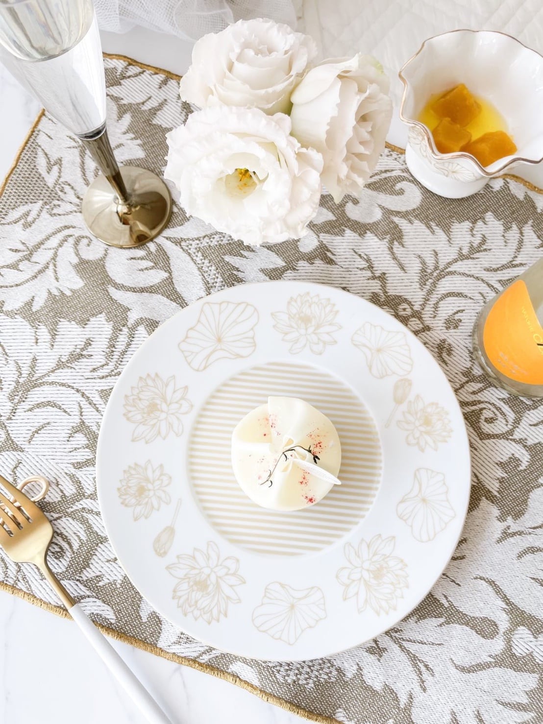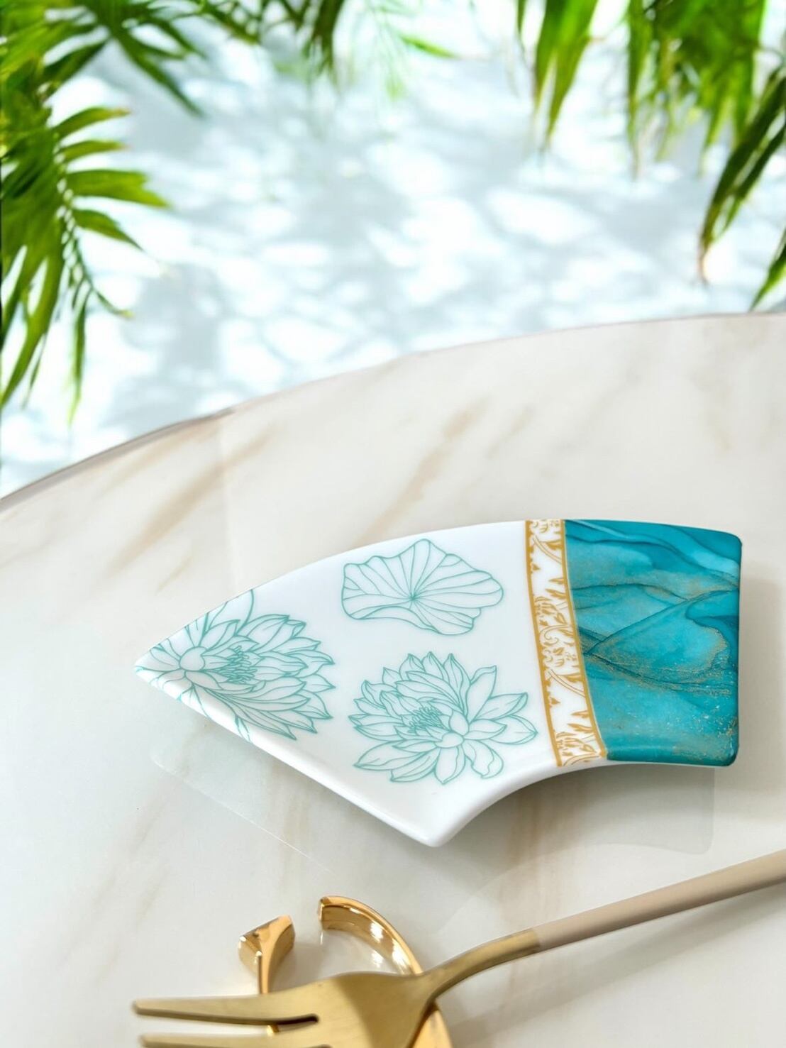 カップやプレートに蓮の花を散りばめるだけでエレガントな印象に。